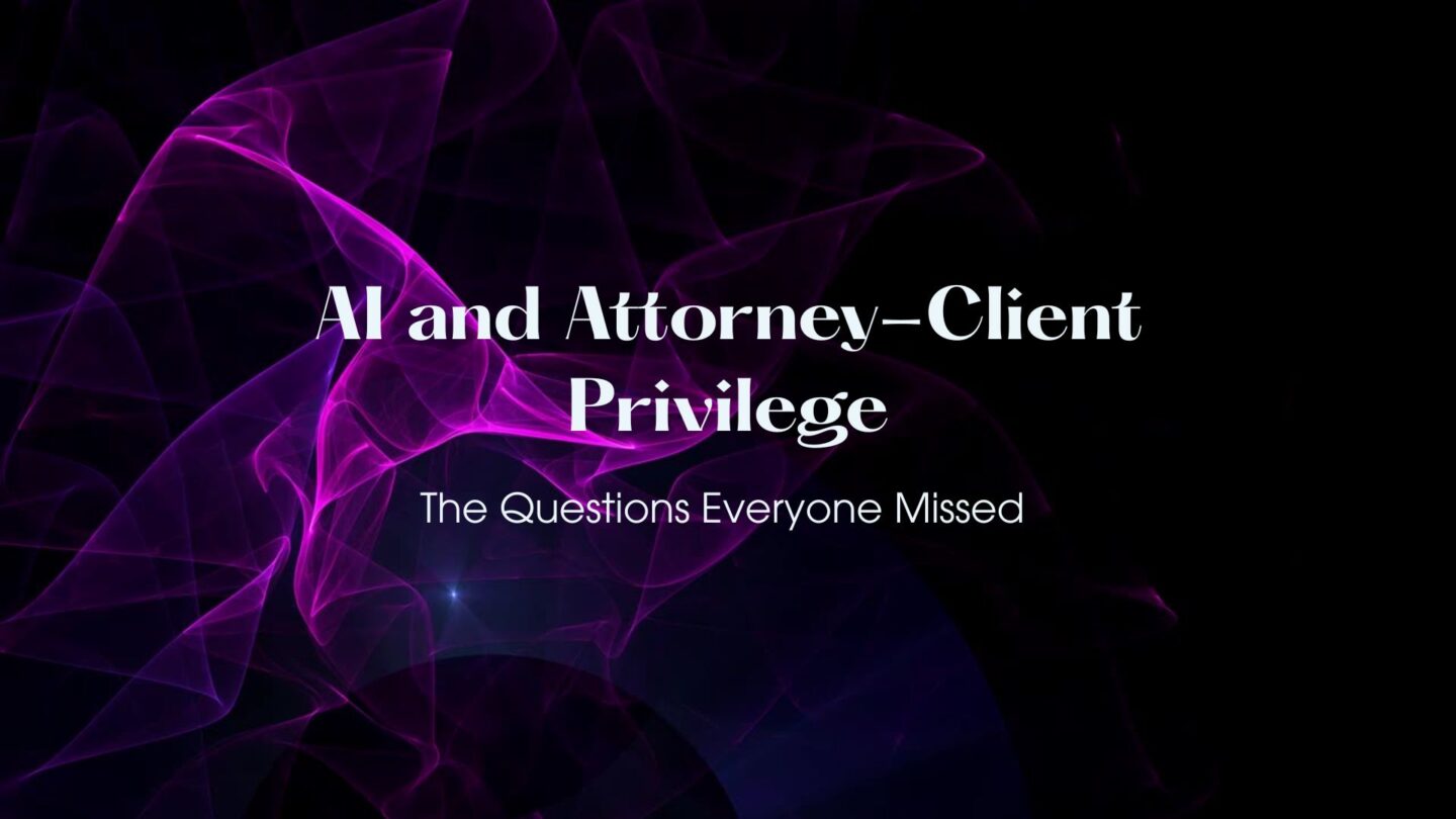 AI AND ATTORNEY-CLIENT PRIVILEGE The Questions Everyone Missed Everyone is talking about AI and attorney-client privilege right now. Why? In the U.S., one of the